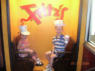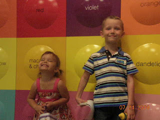 The kiddos were long overdue for a date with Mommy, so I took them down to Crown Center for dinner at Fritz's (the train restaurant), to the Lego exhibit and then to the Crayola Store. Fritz's was such a hit! Lauren spent the first 20 minutes screeching with excitement as the train passed by our booth and I thought both kids were going to explode when a second drain delivered our food to our table. :) It was awesome seeing their excitement. Unfortunately, the Lego exhibit did not garner the same reaction but I guess I made up for it at the Crayola Store where they colored, played and shopped.
