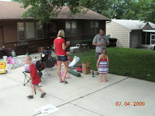 The 4th was a blast!! We had our annual get-together with some neighbors and friends. The food was good, the company was great and the fireworks...oh boy!!! We had enough to keep us going for about 5 hours, almost non-stop. Vince was really into the poppers and sparklers but Lauren, on the other hand, was scared to death of anything that made noise. I spent a lot of the evening with the little darling either on my hip or in my lap. Vincent spent a lot of time playing with his little girlfriends and being Daddy's big helper.